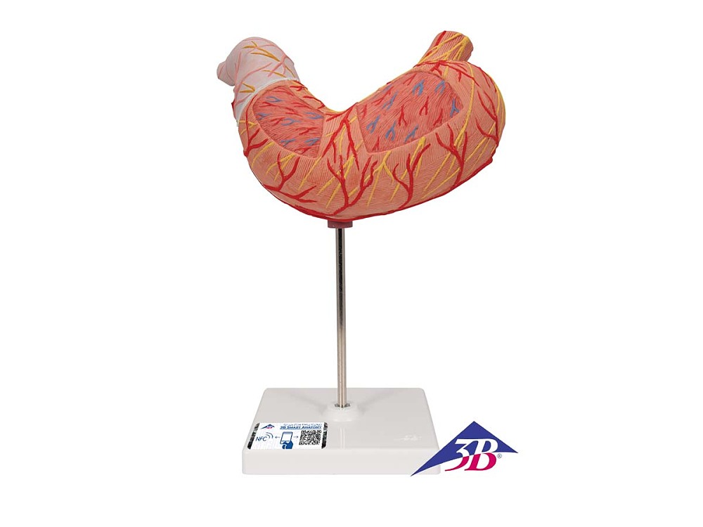 Magenmodell, 2-teilig - 3B Smart AnatomyDas Modell zeigt die einzelnen Schichten der Magenwand von der Cardia bis zum Pylorus. Die vordere Magenhälfte ist abnehmbar. Dargestellt sind:- Untere Speiseröhre- Gefäße- NervenLieferung auf Stativ.Mit jedem originalen 3B Scientific®-Anatomiemodell erhalten Sie über Ihr Smartphone, Tablet oder Desktop-Gerät direkten Zugang zu seinem digitalen Zwilling.Freuen Sie sich auf exklusive virtuelle Anatomieinhalte mit folgenden Leistungsmerkmalen:1. Freies Drehen und Vergrößern/Verkleinern Ihres digitalen Modells2. Anzeige von Hotspots und ihrer anatomischen Strukturen3. Augmented Reality (AR)-Funktion startet Ihr virtuelles Anatomiemodell4. Anatomie-Quizfunktion zum Überprüfen und Verbessern Ihrer Anatomiekenntnisse mit sofortigen Ergebnissen und abschließender Berechnung Ihrer Punktzahl4. Zeichenfunktion für die Bildanpassung mit Funktionen zum Speichern und Weiterleiten6. Nützliche Notizfunktion, die Ihnen beim persönlichen Lernen hilft7. Möglichkeit zum Erlernen der männlichen und weiblichen Anatomie8. Einfacher Zugang zu 3D-Inhalten sowohl online als auch offline9. In 11 Sprachen erhältlichScannen Sie einfach den QR-Code auf Ihrem 3B Scientific®-Anatomiemodell, laden Sie die neue 3B Smart Anatomy-App herunter und betreten Sie die virtuelle Welt der menschlichen Anatomie.Klicken Sie hier, um mehr zu erfahren.