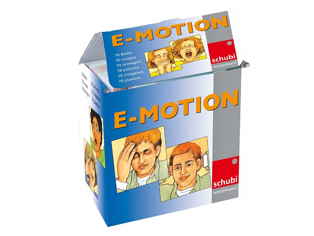 Insgesamt 70 Bildkarten, 9 x 9 cm, mit Anleitung, in Kartonbox. Junge und alte Menschen, Frauen, Männer, Jungen und Mädchen aller Hautfarbe zeigen mit ihren Gesichtsausdrücken, wie ihnen zu Mute ist. Die Palette der Gefühle umfasst alle Schattierungen von Freude und Glück, Übermut und Fröhlichkeit, Schmerz und Trauer, Angst und Schrecken, Überraschung und Verblüffung bis hin zu Langeweile, Missmut und Gleichgültigkeit. Beim genauen Beschreiben der Gesichtsausdrücke wird der Wortschatz erweitert, beim Interpretieren der gezeigten Empfindungen sind Einfühlungsvermögen und Fantasie gefragt. Was steckt hinter den Gefühlen, aus welchem Anlass könnten die entstanden sein? Dem Betrachtendem bleibt viel freier Spielraum für eigene Vermutungen und Interpretationen. Die Bildersammlungen eignet sich für den Einsatz im Deutschunterricht und in lebenskundlichen Fächern, es macht aber auch Spaß, die Gesichtsausdrücke nachzuahmen oder Rollenspiele zu den Gefühlen zu erfinden.