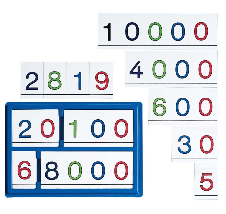 Die Stellenwertkarten zeigen deutlich welchen Wert die Zahlen haben und aus welchem Wert die Zahlen aufgebaut sind. Jeder Wert wird in einer anderen Farbe angeboten. Die Schüler lernen auf diese Weise Zahlen zu strukturieren.Der Satz enthält 41 Kunststoff KartenSolange Vorrat reichtnoch 2 Stück auf Lager