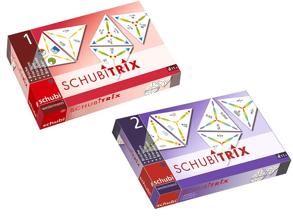 SCHUBITRIX - BrücheDie bunt gestalteten dreieckigen Spielkarten werden so aneinandergelegt, dass Rechnungen und Ergebnisse an den Seiten zusammenpassen.2 Spiele zu 24 Karten in verschiedenen Schwierigkeitsgraden, Anleitung.Brüche 1:- Abbildungen von Brüchen zu den richtigen Bruchzahlen legen- Unechte in echte Brüche umwandelnBrüche 2:- Kürzen- Brüche in Dezimalbrüche umwandelnSchulform: Grundschule, Grundschule 5/6Schulfach: MathematikKlassenstufe: 5. Schuljahr bis 6. SchuljahrAbmessung: 11,4 x 18,2 cmEinbandart: Kasten/Kiste________________________Herausgeber:Westermann GmbH & Co. KGGeorg-Westermann-Allee 6638104 Braunschweigservice@westermann.de