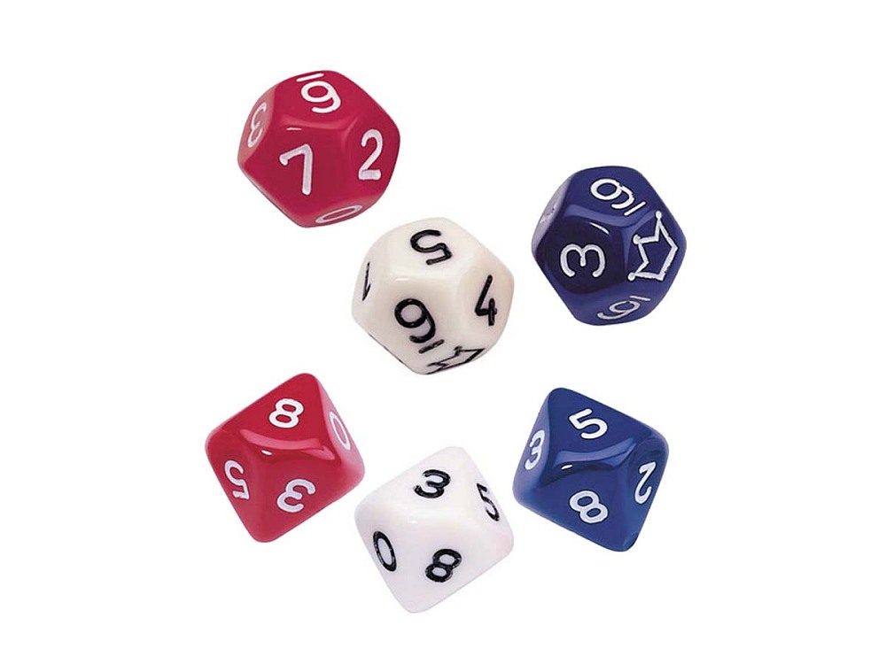 RechenwürfelUnterhaltsames Üben bringt mehr Lernerfolg!Mit diesen Rechenwürfeln lassen sich unzählige Spiele in vielen mathematischen Bereichen durchführen.Je 12 Würfel in 3 verschiedenen Farben im Beutel:- Dodekaeder 0-10 + Jocker (12 Flächen)- Dekaeder 0-9 (10 Flächen): Solange Vorrat reicht - noch 1 Stück auf Lager