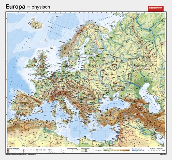 Europa - physisch / stummMaßstab: 1:4 000 000, Format: 155 x 144 cm, beschreib- /abwaschbar