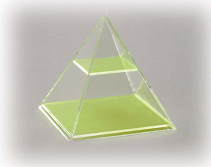Quadratpyramide mit waagerechtem Schnitt.Modell aus Plexiglas, hochwertiger Kunststoff.