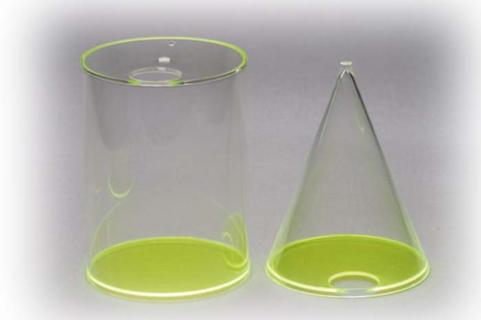 Die Körper sind hergestellt aus Plexiglas, ein besonders hochwertiger Kunststoff.Die Böden der Körper sind fest verklebt und können nicht abgenommen werden.Als Füllmaterial empfiehlt der Hersteller rote Linsen.