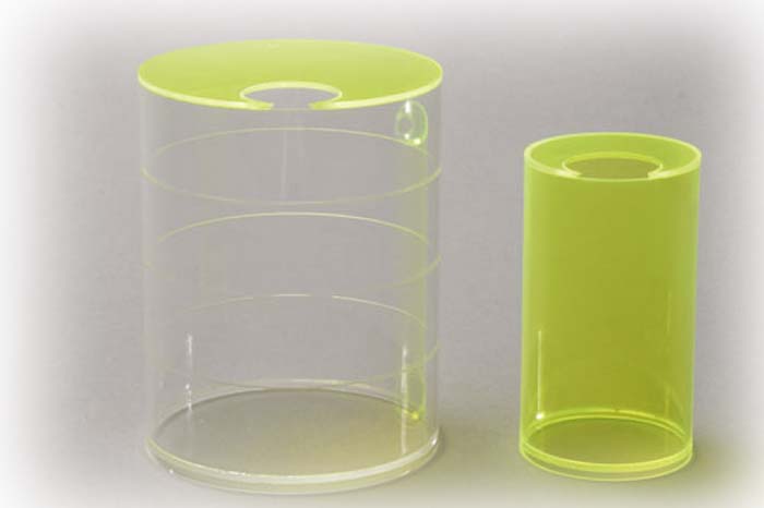 Beschreibung: Zwei Zylinder als Füllkörper. 1 Liter und 1/4 Liter Die Körper sind hergestellt aus Plexiglas, ein besonders hochwertiger Kunststoff. Die Böden der Körper sind fest verklebt und können nicht abgenommen werden. Als Füllmaterial empfiehlt der Hersteller rote Linsen. |