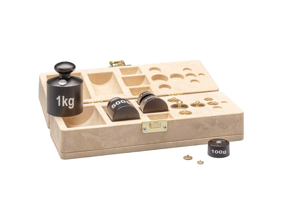 Gewichtssatz 1 g - 1 kg im KastenGesamtgewicht: 2 kg, Kasten aus RE-Wood