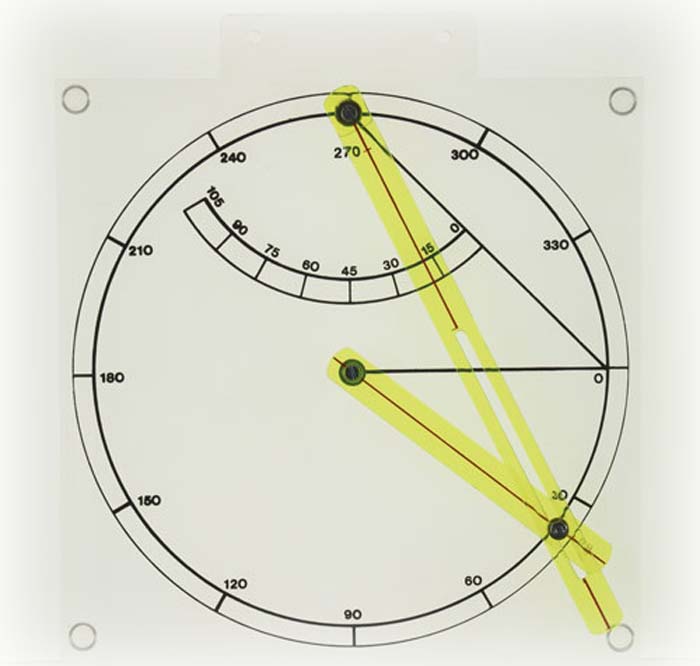 Modell für Mittelpunkts- und Sehnenwinkel.Sehenwinkel werden eingestellt und mit den Mitelpunktswinkeln verglichen.Modell aus Plexiglas, hochwertiger Kunststoff