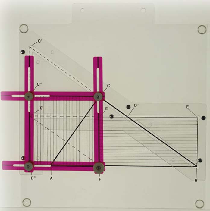 Projektionsmodell zur Beweisführung des Höhensatzes im rechtwinkligen Dreieck mittels Flächenverwandlung.Modell aus Plexiglas, hochwertiger Kunststoff
