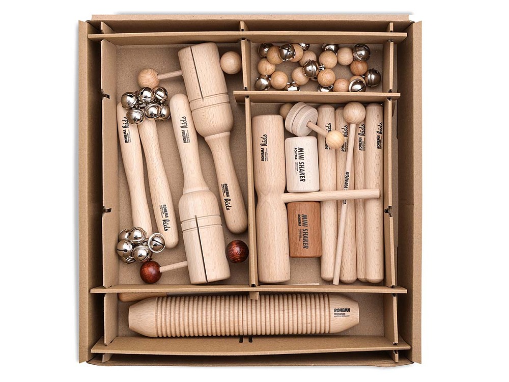 Perkussions-Set - Set 18 verschiedene Instrumente, in Holzbox