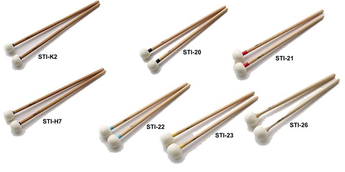STI-22: mittelweich, Filzkopf, Pauken, Trommel, Becken, Paar Schlägellänge: 34,5 cm, Kopfdurchmesser: 33,7 mm