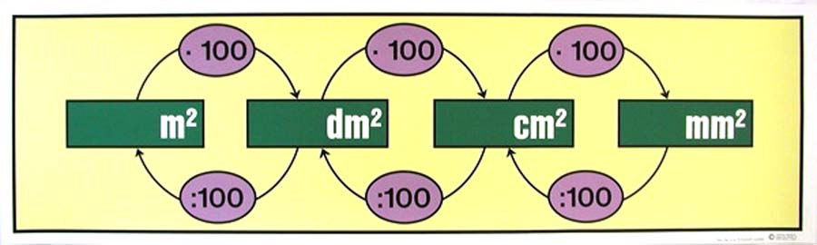 Übungstafel aus Kunststoff zur Umrechnung der Flächenmaße (m² bis mm²). Die grünen Felder sind wie eine Schultafel mit Kreide beschriftbar. Die Umrechnungstafel kann mit Klebstreifen oder Magneten an der Wandtafel befestigt werden und hilft als Daueraushang beim Erlernen der Umrechnungen.Solange Vorrat reichtnoch 1 Stück auf LagerLeichte Gebrauchspuren!