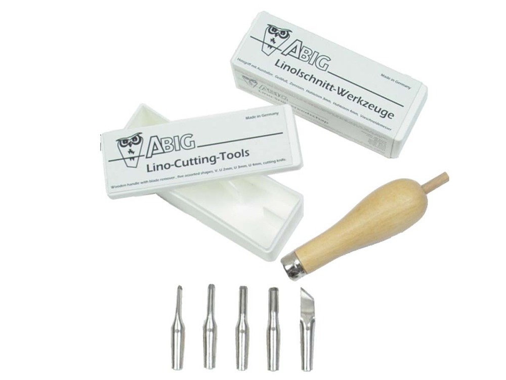 LinolbesteckMit 5 Linolfedern aus Stahl und 1 Holzgriff mit Ausstoßer.Für den Linol- und leichten Holzschnitt empfehlen wir besonders unsere millionenfach bewährte Linolschnittgarnitur, bestehend aus fünf handverlesenen Schneidwerkzeugen und einem Holzgriff mit Ausstoßer für einfachen und schnellen Werkzeugwechsel.Dieses Set wird weltweit verkauft und ist zum Inbegriff für den Linolschnitt geworden_______________________________Hersteller:Art Business Industrial Group GmbHIm Dinkelacker 1872218 Wildberg – Sulz am Eckinfo@abig.de