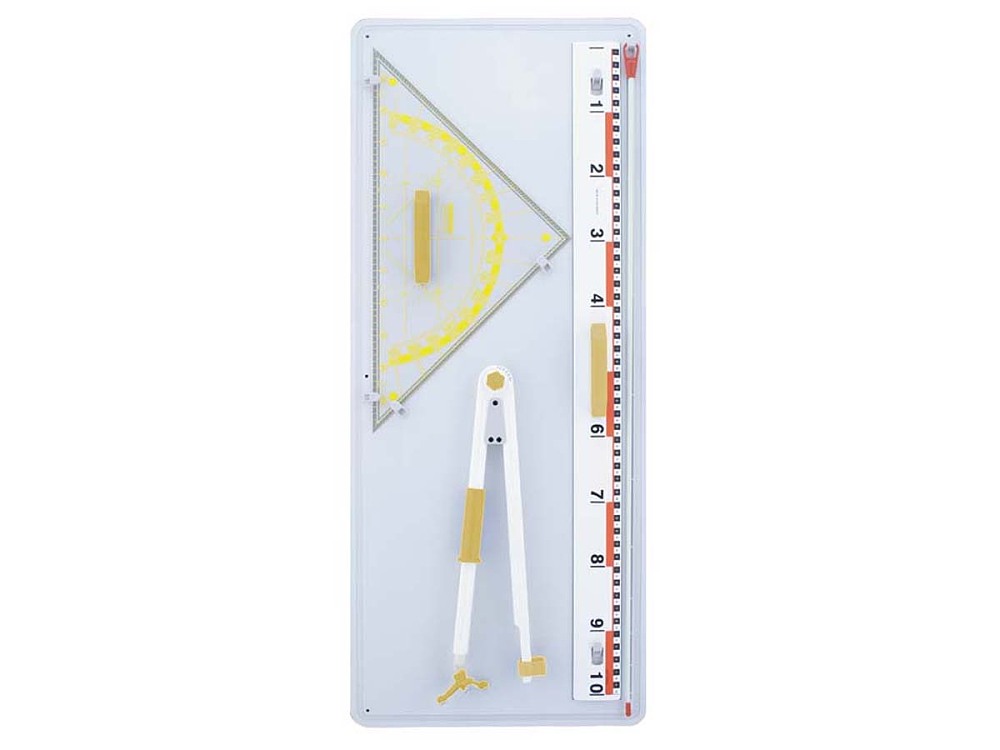 Gerätetafel 4/1bestückt mit:1 Präzisionszirkel1 Geo-Dreieck, Plexiglas 60 cm1 Profil-Lineal dm-Teilung, 100 cm lang1 Glasfiber-ZeigestockDiese Tafel können Sie auch ohne Geräte erhalten.>>>> Bitte wählen Sie unten aus, ob Sie die Tafel mit oder ohne Geräte möchten!Tafel incl. Befestigungsmaterial: 1 Satz Schrauben und Dübeln.