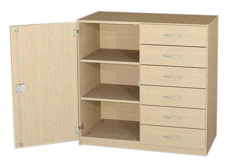 Unterschrank mit SchubkästenHöhe 98 cm, links: 1 Tür, abschließbar, 2 Einlegeböden rechts: 6 Schubkästen