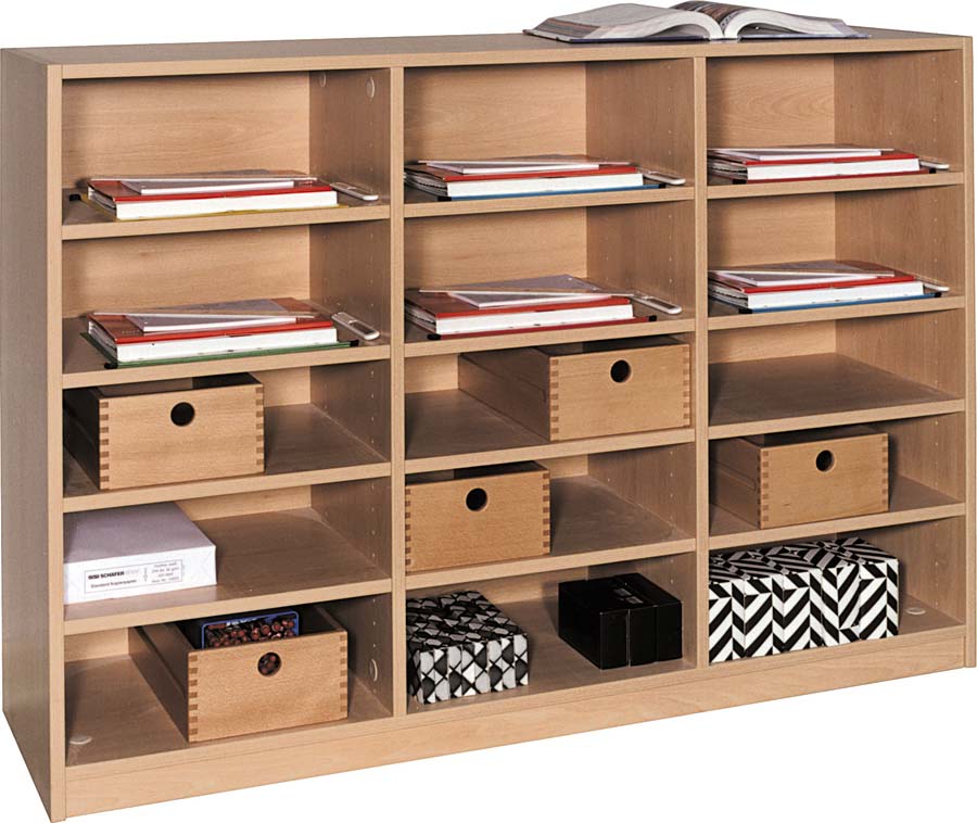 Klassenregalmit 15 Gefachen 3x4 verstellbaren Einlegeböden. Maße: 140 x 98 x 40 cm (BxHxT)