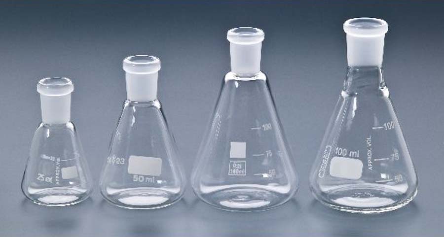 Erlenmeyerkolben mit NSaus Borosilikatglas, verschiedene Inhalte