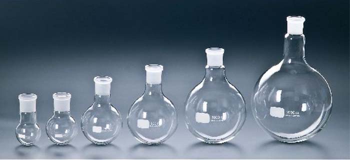 Rundkolben aus Borosilikatglas mit NSInhalt - NS Bestell-Nr.50 ml - 14,5100 ml - 14,5250 ml - 29500 ml - 29