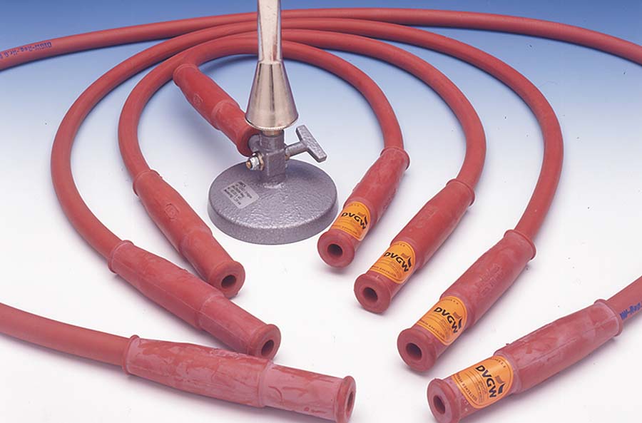 Beschreibung: Gas-Sicherheitsschlauch, nach DIN 30665 mit Metallspirale, schwer entflammbarer gasdichter Ummantelung und elastischen Endmuffen zur sicheren Haftung auch auf Schlauchtüllen. Knickfeste Ausführung, dadurch keine Unterbrechung der Gaszufuhr möglich.