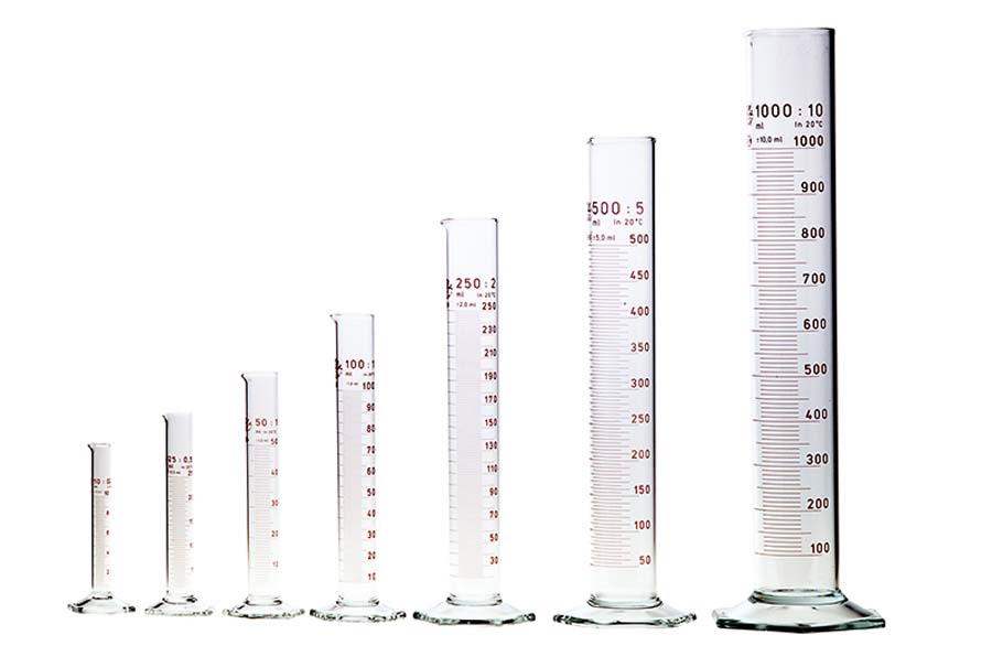 mit Ausguss und Strichteilungmit Sechskantfußnach DIN 12680Inhalt - Teilung25 ml - 0,5 ml50 ml - 1,0 ml100 ml - 1,0 ml250 ml - 2,0 ml500 ml - 5,0 ml1000 ml - 10,0 ml