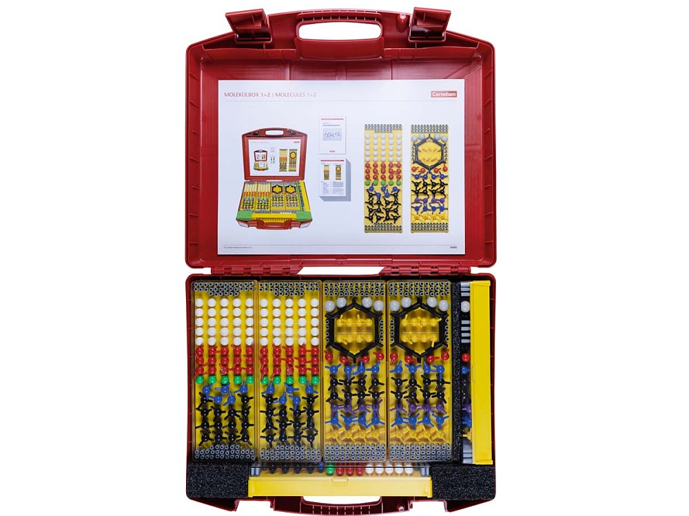 Klassensatz Molekülbaukästen 1+2Inhalt:- 5 x Molekülbaukästen 1- 5 x Molekülbaukästen 2- 10 x Schüleranleitung „Molekülbaukästen 1 und 2“- 1 x Lehrerhandreichung „Molekülbaukästen 1 und 2“