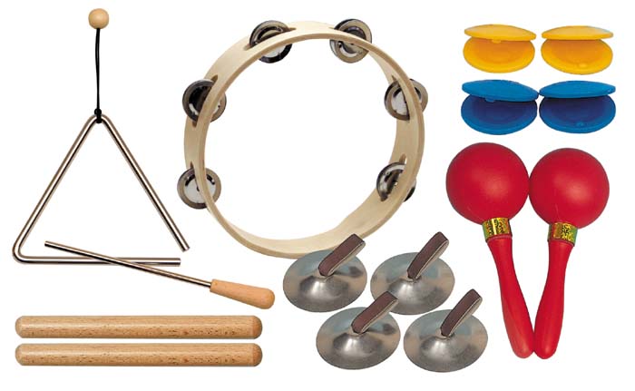 Mini-Sets mit einfachen Instrumenten sind für eine Schulklasse der erste Schritt zur Musikerziehung. Für Gruppen von 7 - 11 Kinder.Im handlichem Kunststoffbeutel. Inhalt:- 1 Paar Claves 18 x 200 mm- 1 Triangel 15 cm- 2 Kastagnetten Kunststoff mit Griff- 1 Paar Maracas Kunststoff- 2 Paar Fingercymbeln Stahl- 1 Schellenring 20 cm, 6 Paar Schellen
