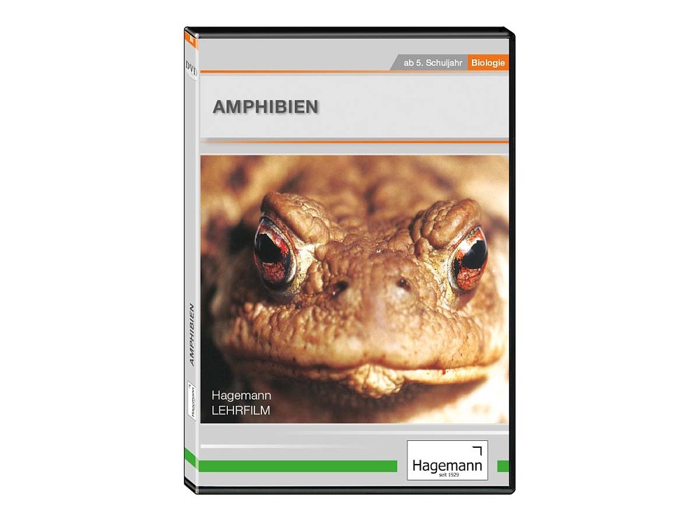 Amphibien - DVDDer Film portraitiert die Froschlurche, Frösche und Kröten sowie die Schwanzlurche Salamander und Molche.Amphibien führen ein Doppelleben. Einen Teil ihres Lebens verbringen sie im Wasser, den anderen hauptsächlich auf dem Land.Das Video beschreibt mit beeindruckenden Bildern die Lebensweise der Amphibien. Es werden verschiedene Vertreter der Froschlurche (Frösche und Kröten) und der Schwanzlurche (Salamander und Molche) vorgestellt. Der Film erläutert Besonderheiten in Körperbau, Fortpflanzung und Entwicklung und gibt einen Überblick über die typischen gemeinsamen Merkmale der Amphibien.Die Populationsgrößen zahlreicher Amphibienarten haben weltweit stark abgenommen. Der Film erklärt die vielfältigen Ursachen dieser Entwicklung.DVD mit ca. 18 Min. Spieldauer, BegleitheftEinsetzbar in: Biologie (ab 7. Klasse)SchullizenzVideo