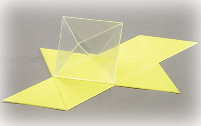 Oktaeder, allseits geschlossen, glasklarmit Oberflächenetz, Kantenlänge: 10 cm