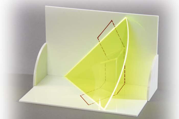 Räumliches Modell für die wahre Größe einer Strecke aus Grund- und Aufriss.