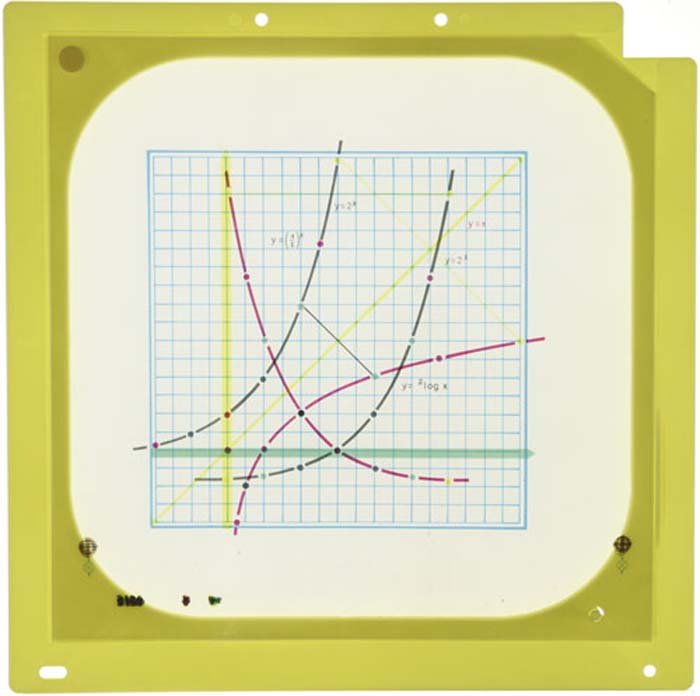 Schwenkfolie - Logarithmische Funktiony = 2x und y = (1/2)x sowie y = log2x, für den Overheadprojektor