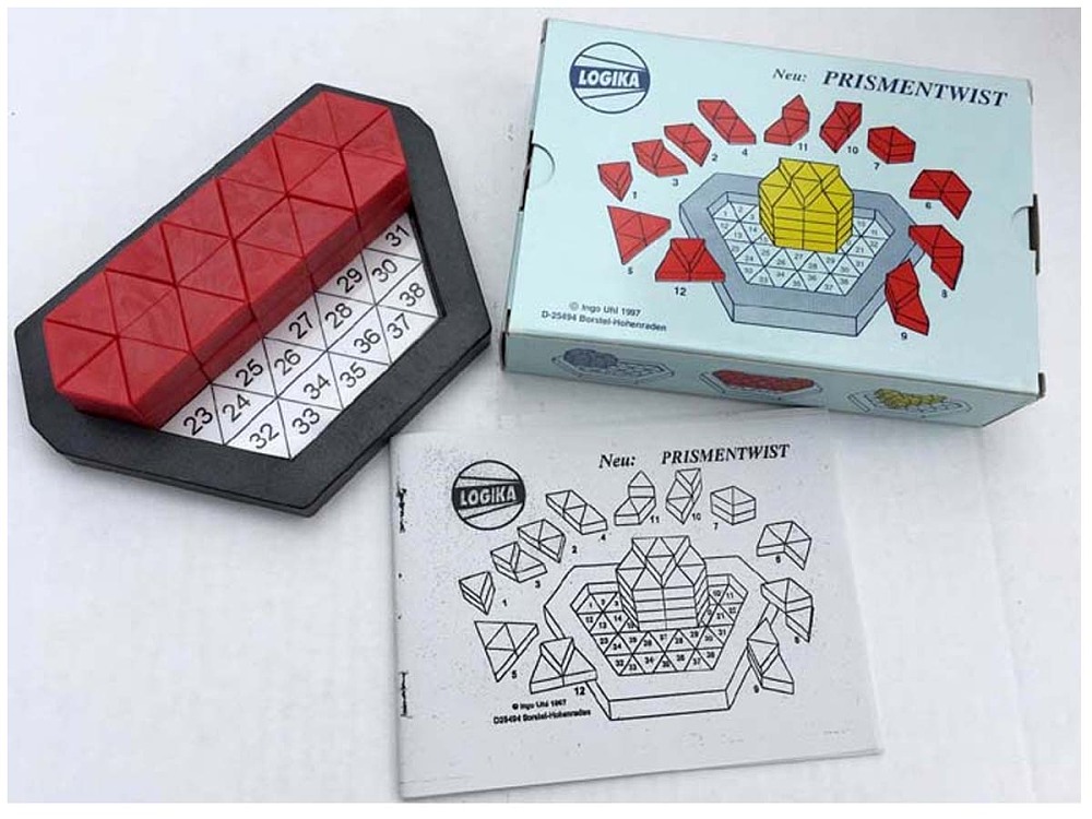 Prismentwist3-D Puzzle aus 12 verschiedenen Bausteinen, ausgezeichnet mit "spiel gut"! Spieler: 1 Alter: ab 8 Jahren Dauer: ab 5 Minuten Solange Vorrat reicht
