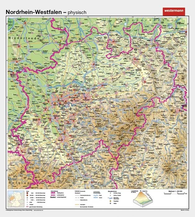 Nordrhein-Westfalen - physisch / politischMaßstab: 1:150 000, Format: 147 x 161 cm, beschreib- /abwaschbar
