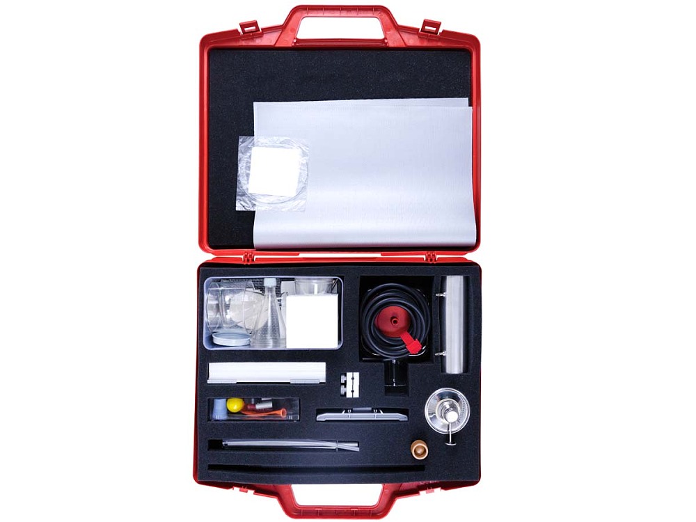 Inhalt 1 × Isolierblock für Kunststoffbecher 1 × Teelichter in Metallbechern 1 × Gummistopfen, 24/18 mm, mit 1 Bohrung 1 × Färbemittel, blau 1 × Kunststoffbecher mit Graduierung 1 × Kunststoffwanne, glasklar 1 × Kunststoffplatte, weiß 1 × Arbeitsunterlage 1 × Keramikdrahtnetz 1 × Tiegel, Metall 1 × Aluminiumrohr, 200x8 mm 3 × Gummischlauch, schwarz 3 mm 1 × Heizrohr mit zwei Steckerstiften 2 × Stativstab, 330 mm 2 × Doppelmuffe mit Schlitz, Aluminium 1 × Haltering, 75 mm Ø 1 × Profilschiene mit Mittelbohrung, 180 mm 2 × Klemmschieber 2 × Schienenfüße, steckbar 1 × Halteclip 15 mm an Stab 1 × Saugflasche, Kunststoff, 90 ml 1 × Kunststofftrichter 1 × Kunststoffbecher, 100 ml 1 × Luftkissenplatte 2 × Luftballons, 100 Stück 1 × Heißluftballon 1 × Wärmeströmungsrohr, 100 x 100 mm 1 × Thermometer, –10 bis +110 °C 1 × Erlenmeyerkolben, DURAN®, 100 ml 1 × Glasrohr, gerade, 200 mm 1 × Gummistopfen, 13/9 mm 1 × Gummistopfen, 24/19 mm, mit 1 Bohrung 1 × Reagenzgläser, Fiolax, 180x18 mm, 100 Stück 1 × Schlauch-Schnelltrennkupplung 1 × Spiritusbrenner, Metall 1 × Halteclip 25 mm an Stab 1 × 0000137151 1 × Kunststoffspritze mit Schlauchansatz 1 × 0000476361 1 × 0000476601 1 × 0000476871 1 × 0000478491 1 × Bimetallstreifen 1 × Kunststoffschachtel, 140/50/35 mm 1 × 0000195271