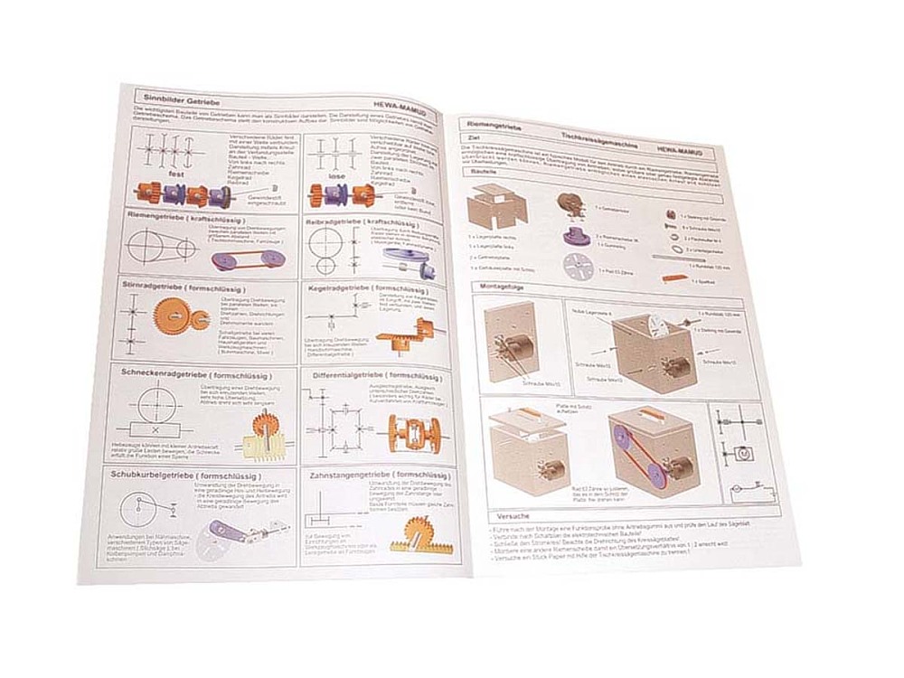 Anleitungsbuch - Getriebe- u. MaschinenbaukastenDas Anleitungsbuch liegt jedem Baukasten bei, kann einzeln bestellt werden.____________________________Hersteller:HEWA LehrmittelHeinrich-Heine-Straße 1499510 Apoldatuemptner@hewa-lehrmittel.de