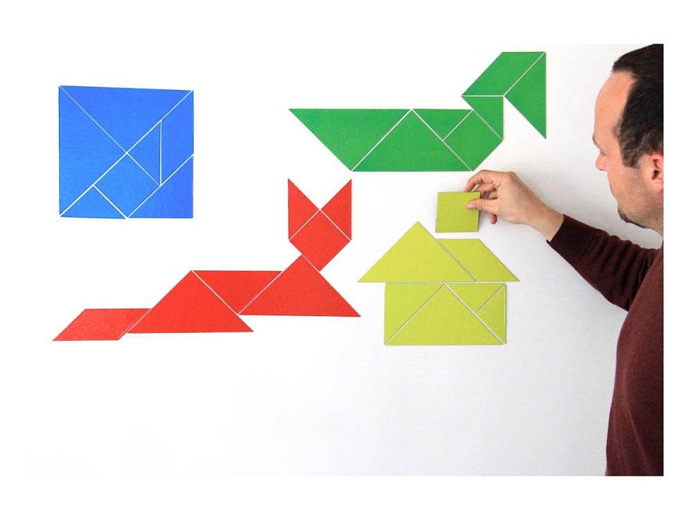 Tangram für die Tafel20 x 20 cmim rot, gelb, grün + blau aus MAG-Pap magnethaftend
