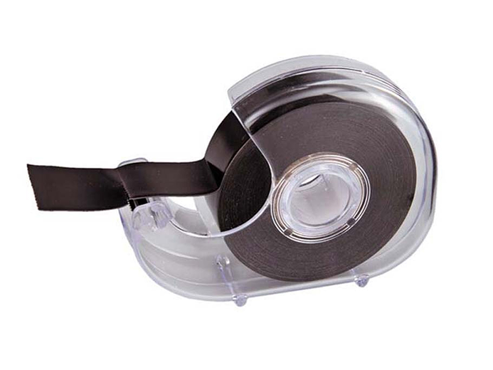 Beschreibung: Selbstklebende Magnetstreifen ... in beliebiger Länge Mit dem Magnet-Streifen-Abroller können Bilder, Poster, Papier und Pappe sekundenschnell magnetisiert werden. Die Materialien halten dann auf Metallflächen, Stahl-Emaille-Tafeln und Infoboards. Die Handhabung ist wie bei einem Klebefilmabroller mit gezahnter Abrisskante.