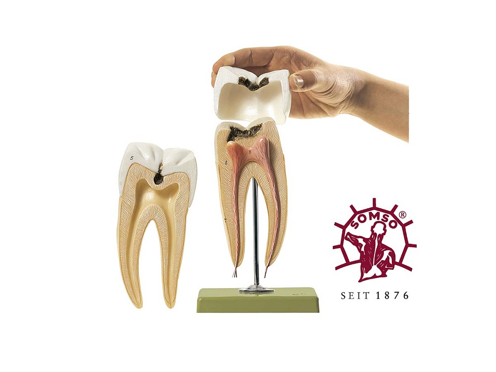 Backenzahn mit Kariesca. 8fach vergrößert, aus SOMSO-Plast®, 3-teilig