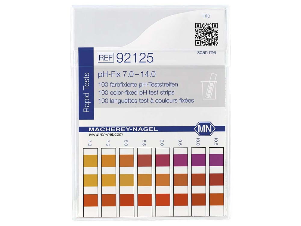 Abstufung: pH - 7,0 • 7,5 • 8,0 • 8,5 • 9,0 • 9,5 • 10,0 • 10,5 • 11,0 • 11,5 • 12,0 • 12,5 • 13,0 • 13,5 • 14,0 Auswertbar auf Reflektometer: QUANTOFIX Relax Messbereich instrumentell: pH - 7,0-13,5 CE-zertifiziert: Nein Haltbarkeit (ab Produktion): 4 Jahr(e) Lagertemperatur: 4–30 °C Lieferumfang: 100 Teststreifen in der Rechteckdose mit Farbskala |