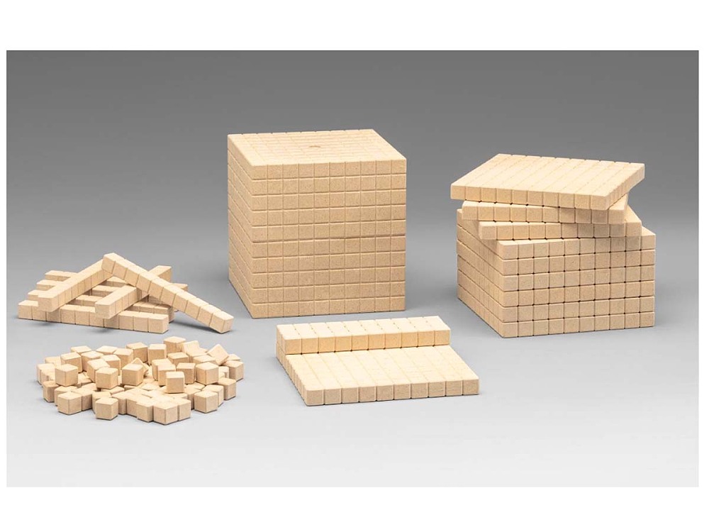 Dienes Grundsortimentnaturfarben (121 Teile)100 Einerwürfelchen, 10 Zehnerstäben, 10 Hunderterplatten, 1 Tausenderwürfel.Naturfarben aus RE-Wood.- Erkennen und nutzen von Strukturen bei der Zahlerfassung (z. B. 1000 als 10 H oder als 100 Z)- Die Struktur des Zehnersystems (Bündelung, Stellenwert) planvoll und systematisch nutzen und Beziehungen zwischen verschiedenen Zahldarstellungen begründen (z. B. Stellenwertschreibweise, Stufenschrift: 734 → 7H 3Z 4E, Zahlwort, Einerwürfel / Zehnerstangen/ Hunderterplatten), um sicher über das dekadische Stellenwertsystem zu verfügen.- Vergleichen von Rauminhalten einfacher Körper durch Bauen mit Einheitswürfeln und durch Auszählen von Einheitswürfeln.- Auf Kenntnisse zur Messung von Flächeninhalten zurückgreifen.- Arithmetische Werte (stellvertretend dargestellt in verschiedenen Farben) verstehen.RE-Wood besteht zu 100% aus recycelten Materialien, ist PEFC zertifiziert und nach Gebrauch immer wieder recycelbar