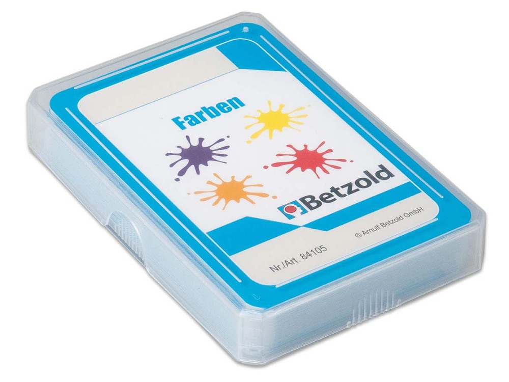 Farben - Kartenset zum Magischen ZylinderÜbung macht den Meister. Und hier macht das Üben auch noch Spaß.Vokabeltraining mit Bild-Wort-Zuordnung.Die Schüler sehen auf jeder Karte eine Fragestellung.Sie nennen das Ergebnis und werfen die Karte in den Schacht des Magischen Zylinders.Dort wird die Karte gedreht und unten erscheint die Karte mit der Lösung nach oben.So zeigt der Zylinder schnell und schlau das richtige Ergebnis.Das begeistert Ihre Schüler und spornt zum Weitermachen an.Kartensatz enthält 36 Karten (Spielkartenformat)_________________________Herausgeber:Arnulf Betzold GmbHFerdinand-Porsche-Str. 673479 Ellwangen (Jagst)service@betzold.de