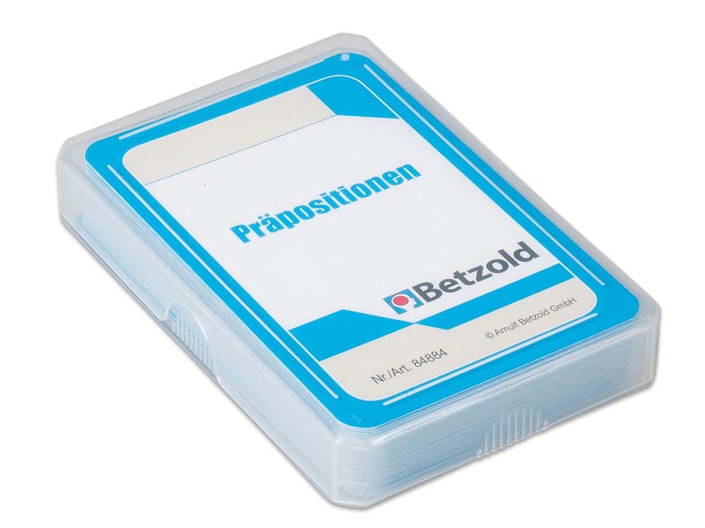 Präpositionen - Kartenset zum Magischen Zylinder Übung macht den Meister. Und hier macht das Üben auch noch Spaß.Vokabeltraining mit Bild-Wort-Zuordnung.Die Schüler sehen auf jeder Karte eine Fragestellung.Sie nennen das Ergebnis und werfen die Karte in den Schacht des Magischen Zylinders.Dort wird die Karte gedreht und unten erscheint die Karte mit der Lösung nach oben.So zeigt der Zylinder schnell und schlau das richtige Ergebnis.Das begeistert Ihre Schüler und spornt zum Weitermachen an.Kartensatz enthält 36 Karten (Spielkartenformat)_________________________Herausgeber:Arnulf Betzold GmbHFerdinand-Porsche-Str. 673479 Ellwangen (Jagst)service@betzold.de