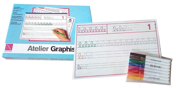 Übungsmaterialien zur Vorbereitung auf das Erlernen der SchriftGrafik 2 enthält 3 Serien graphischer Vorlagen.Hierbei macht sich das Kind spielerisch mit den Grundzügen der graphischen Mechanismen vertraut, deren Beherrschung ihn die Erlernung der Schreibschrift erleichtert.Geübt werden fortlaufende Linien: Rundungen, Wellenlinien, durchbrochene Linien, Kreisbögen, usw.Materialbeschreibung:3 Serien von jeweils 10 graphischen Vorlagen (20 x 29,7 cm)Serien sind nach Schwierigkeitsgrad gestaffeltJede Vorlage zeigt:- oben links ein Beispiel wie die Übung aussehen kann- oben rechts ein fertiger Ausschnitt der Übung mit Pfeilhilfe- im Hauptfeld der Ansatz der Übung, mit Hilfslinien der Höhen und TiefenSolange Vorrat reichtnoch 1 Stück auf Lager