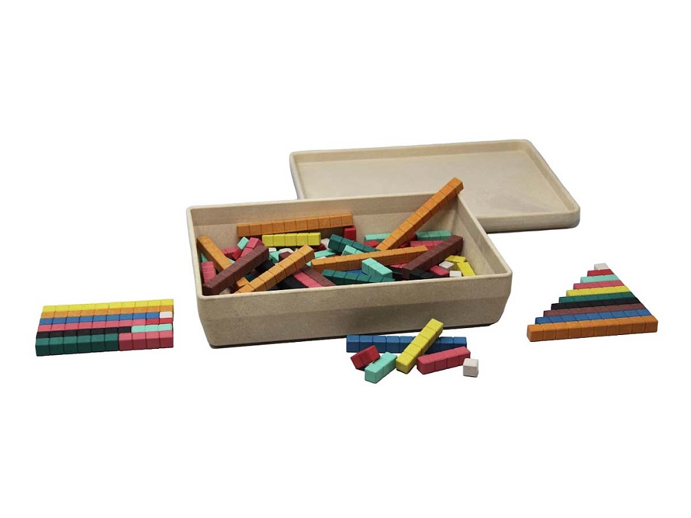 36 weiße Würfel - 1 x 1 x 1 cm, 18 rote Stäbchen - 1 x 1 x 2 cm, 18 hellgrüne Stäbchen - 1 x 1 x 3 cm, 12 rosa Stäbchen - 1 x 1 x 4 cm, 8 gelbe Stäbchen - 1 x 1 x 5 cm, 6 dunkelgrüne Stäbchen - 1 x 1 x 6 cm, 6 schwarze Stäbchen - 1 x 1 x 7 cm, 6 braune Stäbchen - 1 x 1 x 8 cm, 6 blaue Stäbchen - 1 x 1 x 9 cm, 10 orange Stäbchen - 1 x 1 x 10 cmJeder Stab hat eine 1 cm - Einteilung- Entdecken des Zahlenraums 1 - 10- Zuordnung von Farben zu entsprechenden Zahlen- Bildung des Zahlbegriffs – Erschließung des Zehner-Stellenwertsystems- Erschließung aller Grundrechenarten durch sichtbare Zuordnung und begreifbares, spielerisches Lernen- Unterstützung beim Übergang vom visuellen Abbild des Zahlenraums zum mathematisch abstrakten RechenvorgangVerpackt in einer RE-Wood® Box.RE-Plastic ist 100% post-consumer-recycelter Kunstoff, der immer wieder zu 100% recycelbar ist.Alter: Ab 3 JahreWarnhinweis: Achtung! nicht geeignet für Kinder unter 3 Jahren. Kleinteile