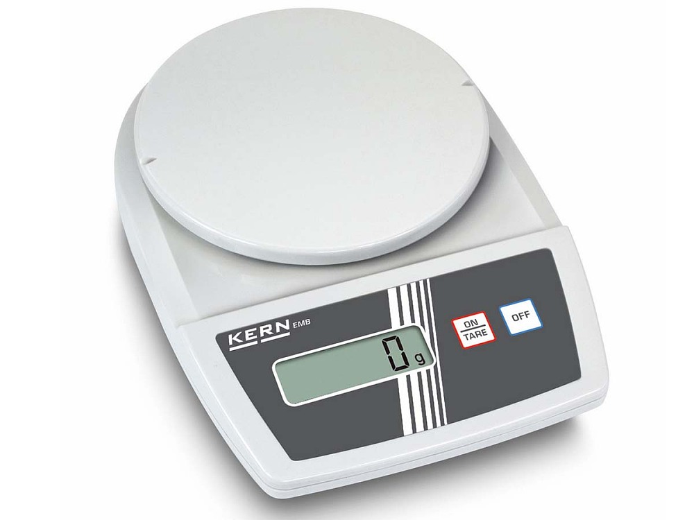 Präzisionswaage EMB 2200-0- Einfache und komfortable 2-Tasten-Bedienung, dadurch auch gut für den Schul- und Lehrbetrieb geeignet- Zuwiegefunktion vereinfacht Rezeptieren- Besonders flache Bauweise- Sicheres und rutschfreies Aufstellen durch Gummifüße- Startbereit: Batterien inklusive. AUTO-OFF-Funktion zur Batterieschonung, abschaltbar- Großes LCD-Display, Ziffernhöhe 15 mm- Abmessungen Wägefläche, Kunststoff, ableitfähig lackiert, ø 15 cm groß- Nettogewicht ca. 0,75 kg- Zulässiger Umgebungstemperaturbereich 5 °C/35 °C- Wägebereich: 2200 g- Ablesbarkeit: 1 gVideo zum Produkt___________________________Hersteller:KERN & SOHN GmbHZiegelei 172336 Balingen-Frommerninfo@kern-sohn.com
