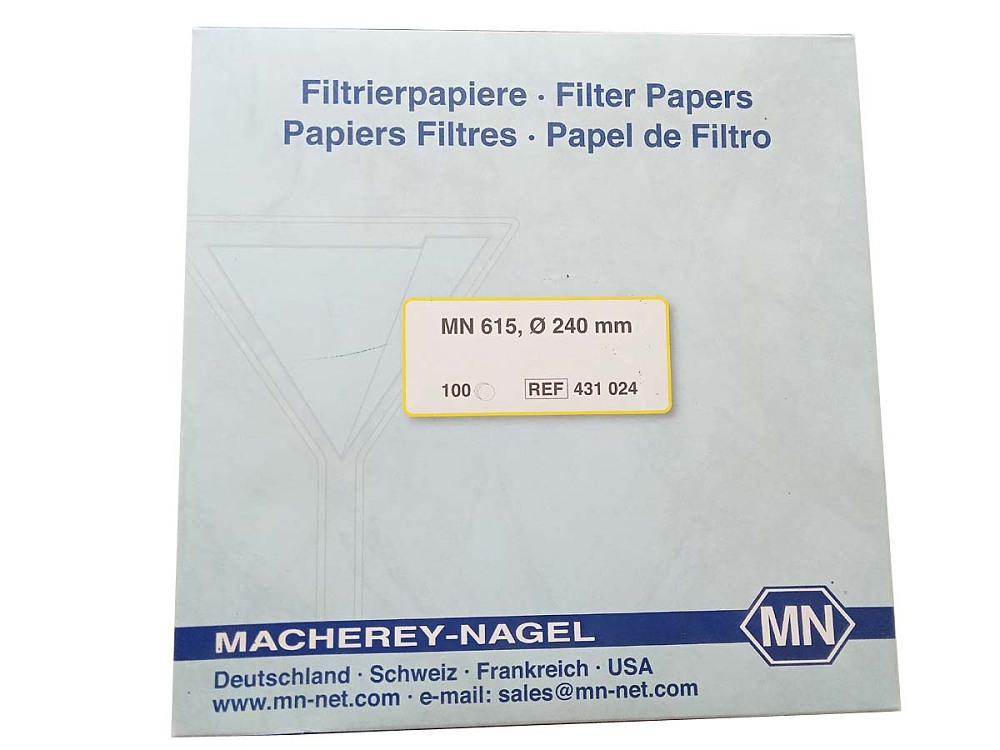 Rundfilter, MN 615, Qualitativ, Mittelschnell (22 s), GlattMN 615 ist das am häufigsten verwendete Filterpapier mit mittlerem Rückhaltevermögen und mittlerer Flussrate. Dieses Filterpapier deckt die meisten Anwendungen im Labor ab und wird häufig für die Klärung von Flüssigkeiten verwendet.Oberfläche: GlattFlächengewicht: 70 g/m²Dicke: 0,16 mmFiltriergeschwindigkeit Beschreibung: MittelschnellFiltriergeschwindigkeit: 22 sQualität: QualitativMaterial: CelluloseAschegehalt: ca. 0.1 %Farbe: WeißRückhaltevermögen: 4–12 µmNassfestigkeit: LeichtDurchmesser: 240 mm___________________________Produktinfo:Hersteller: MACHEREY‑NAGEL GmbH & Co. KGValencienner Str. 1152355 Dürensales@mn‑net.com