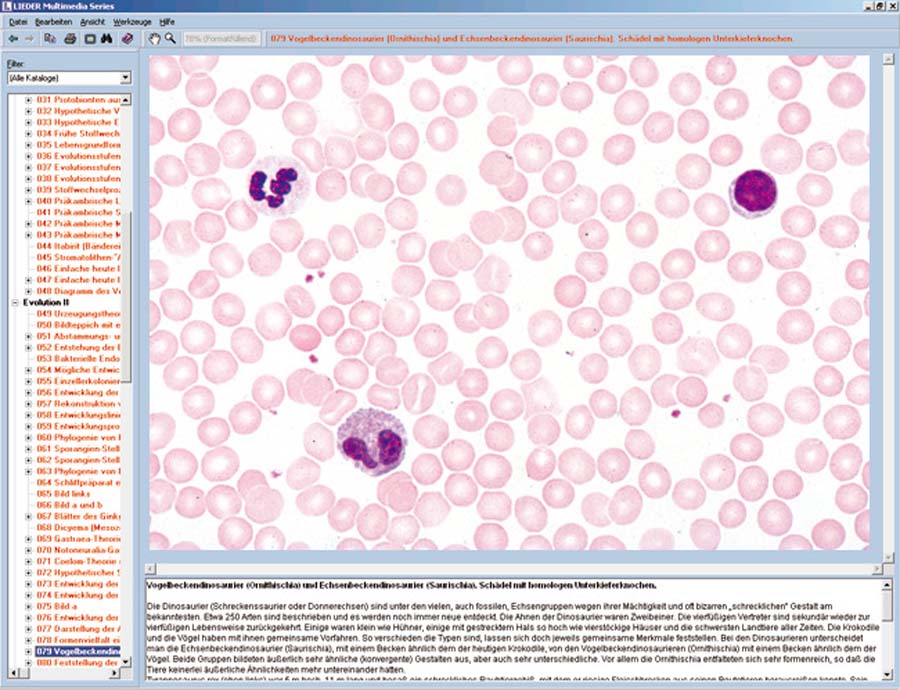 Im Rahmen unseres Multimedia-Programms “Mikroskopische Biologie” liefern wir interaktive CD, die auf unsere Schulserie A abgestimmt ist. Das Basismaterial bildet hervorragende Mikrofotos aller in der Schulserie enthaltenen Mikropräparate in mehrfachen Vergrößerungsstufen und Bildausschnitten. Darüberhinaus werden eine große Zahl zusätzliche zu den Themen passende Präparate gezeigt, die der Erweiterung der vorhandenen Präparateserie dienen. Anatomische Farbtafeln und schematische Zeichnungen sowie ausführliche Texte zu allen Einzelthemen dienen der Erläuterung der Präparate und können ausgedruckt werden.