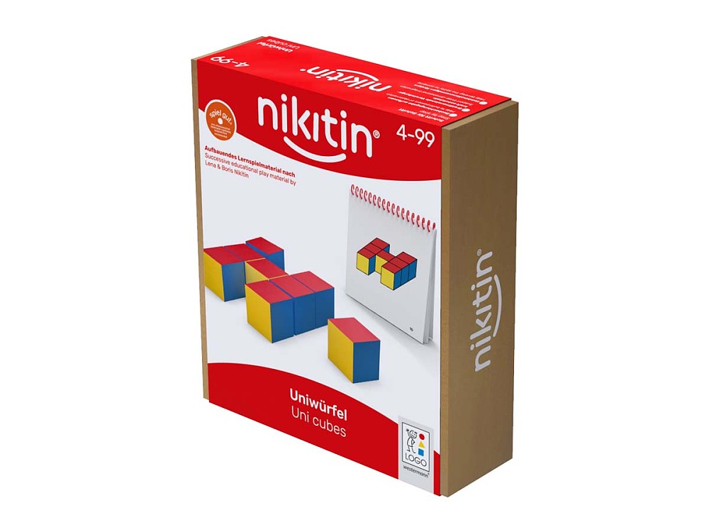 Nikitin N2 Uniwürfel - Von der Ebene in den RaumRäumliches Vorstellungsvermögen, Farb- und Formerkennung sind Grundlagen unserer Wahrnehmung.Beim Uniwürfel werden 27 mehrfarbige Holzwürfel nach einfachen bis anspruchsvollen Vorlagen kombiniert.Ein Vorlagenheft mit vielen schön gestalteten Mustern führt die Kinder Schritt für Schritt von der Ebene in den Raum - vom Leichten zum Schweren.Konzentration und genaues Beobachten werden dabei ebenfalls trainiert. Die schwierigen Spielvorlagen sind auch für Erwachsene oft eine ebenso spannende wie lehrreiche Herausforderung.____________________________Hersteller:LOGO Lern-Spiel-Verlag GmbHRettichstr. 792318 Neumarktinfo@spielundlern.de
