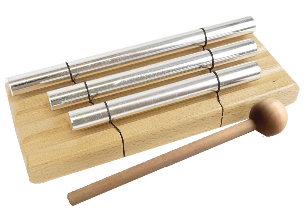 Klangstab auf Holzplatte - 3 Stäbeaus Aluminium mit Holzschlägel