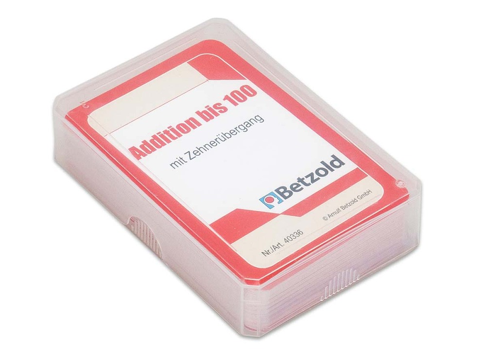 Addition bis 100 mit ZÜ - Kartenset zum Magischen Zylinder- Fit im Zahlenraum 100- Übungskarten für magischen Zylinder- bis 100 mit Zehnerübergang- Spielerisch Mathe lernenDank des magischen Zylinders (nicht im Lieferumfang enthalten) macht Mathe lernen Spaß. Dieser Kartensatz beinhaltet Aufgaben zum Themengebiet Addition bis 100 mit Zehnerübergang. Spielerisch und motivierend können die Kinder so ihr Wissen erweitern und zu echten Matheprofis werden. So wird gespielt:Aufgaben lesen, Ergebnis nennen und Karte in Zylinder werfen. Hier wird diese gedreht und der Zylinder spuckt die richtige Antwort aus. Zur kinderleichten Selbstkontrolle und besonders motivierend. Lieferumfang: 48 Karten (doppelseitig farbig bedruckt) im KunststoffetuiBitte beachten SieIm Lieferumfang ist der Zylinder nicht enthalten._________________________Herausgeber:Arnulf Betzold GmbHFerdinand-Porsche-Str. 673479 Ellwangen (Jagst)service@betzold.de