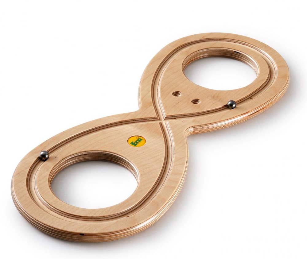 Inhalt: 1 Spielplatte, 2 StahlkugelnDie Liegende Acht wird vordergründig zur Förderung der Konzentration und der Ausbildung der Handmotorik und des Fingerspitzengefühls eingesetzt. Die innenliegenden Kugelbahnen können zusätzlich noch motorische Übungen im Arm- und Schulterbereich positiv beeinflussen. Damit wird die Beweglichkeit von Kindern und Erwachsenen auf verschiedensten Ebenen in Anspruch genommen. Das 2D- und 3D-Konzept für dieses Produkt wird durch ein beiliegendes Übungsheft sehr gut veranschaulicht.Die zwei mitgelieferten Stahlkugeln sind durch die nicht sichtbaren, magnetischen Kugelhalterungen immer griffbereit und können einzeln oder zusammen in dieses Koordinationsspiel integriert werden.Ein Konzentrationsspiel aus lackiertem Birken-Schichtholz. Schweiß- und speichelecht!Solange Vorrat reichtnoch 5 Stück auf Lager